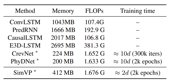 SimVP可以在轻量级其次上达到 SOTA 结果。此外,与 PhyDNet 相比,SimVP 的训练时间更短。