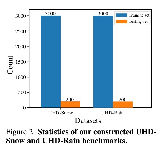 作者构建了 UHD 雪和雨基准,分别命名为 UHD-Snow 和 UHD-Rain,以弥补该领域的不足。
