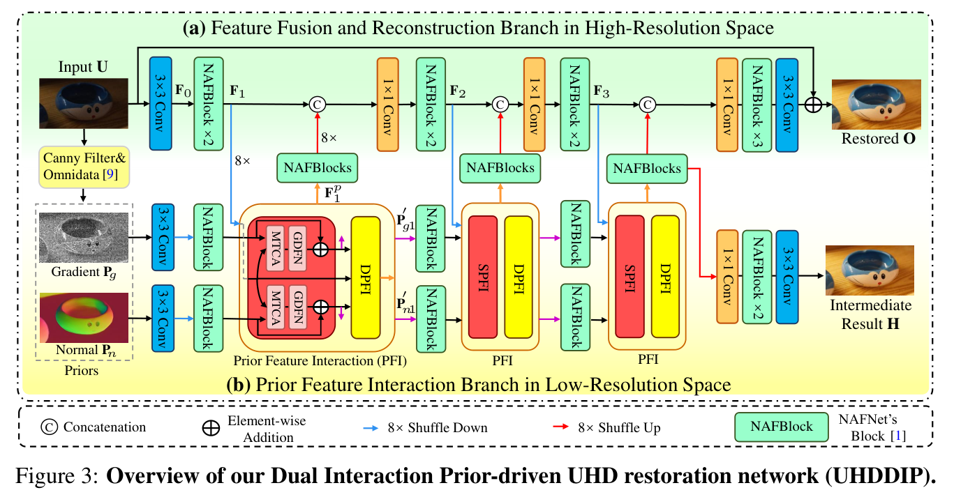 此外,还提出了有效的双重交互先验驱动的 UHD 恢复解决方案(UHD-DIP)。其原理是: