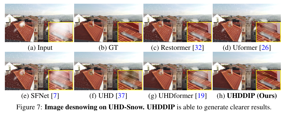 以下是 UHD-Snow 和 UHD-Rain 基准中的一些示例。