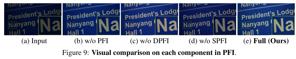 上面可视化的图中,(g) 展示了第一个 PFI 的可视化特征。可以观察到,PFI 可以有效地进行结构与细节特征。