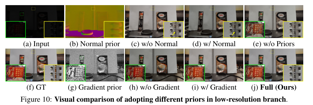 前者学习高分辨率特征,并融合先验引导的低分辨率特征以重建清晰图像,而后者利用法线和梯度先验挖掘有用的空间特征和细节特征,以更好地引导高分辨率恢复。