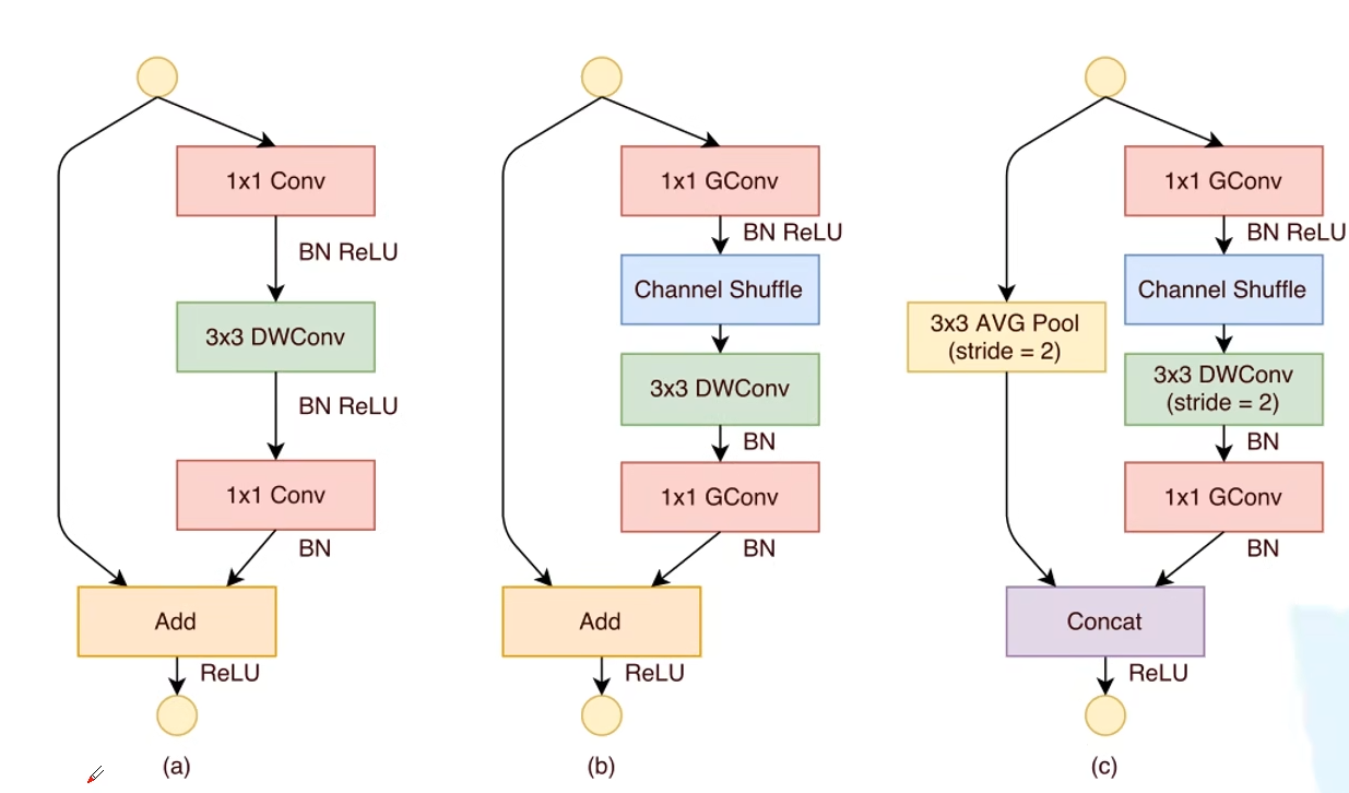 - 在 ShuffleNet Unit 中使用的全是 GConv 与 DWConv
