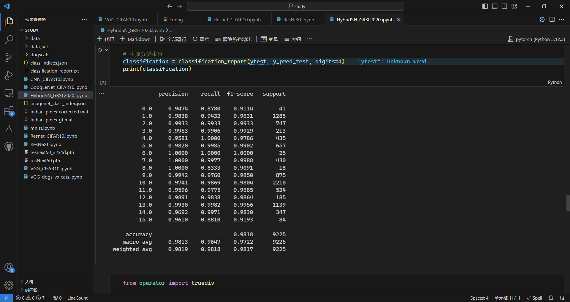 训练HybridSN,然后多测试几次,会发现每次分类的结果都不一样,请思考为什么?