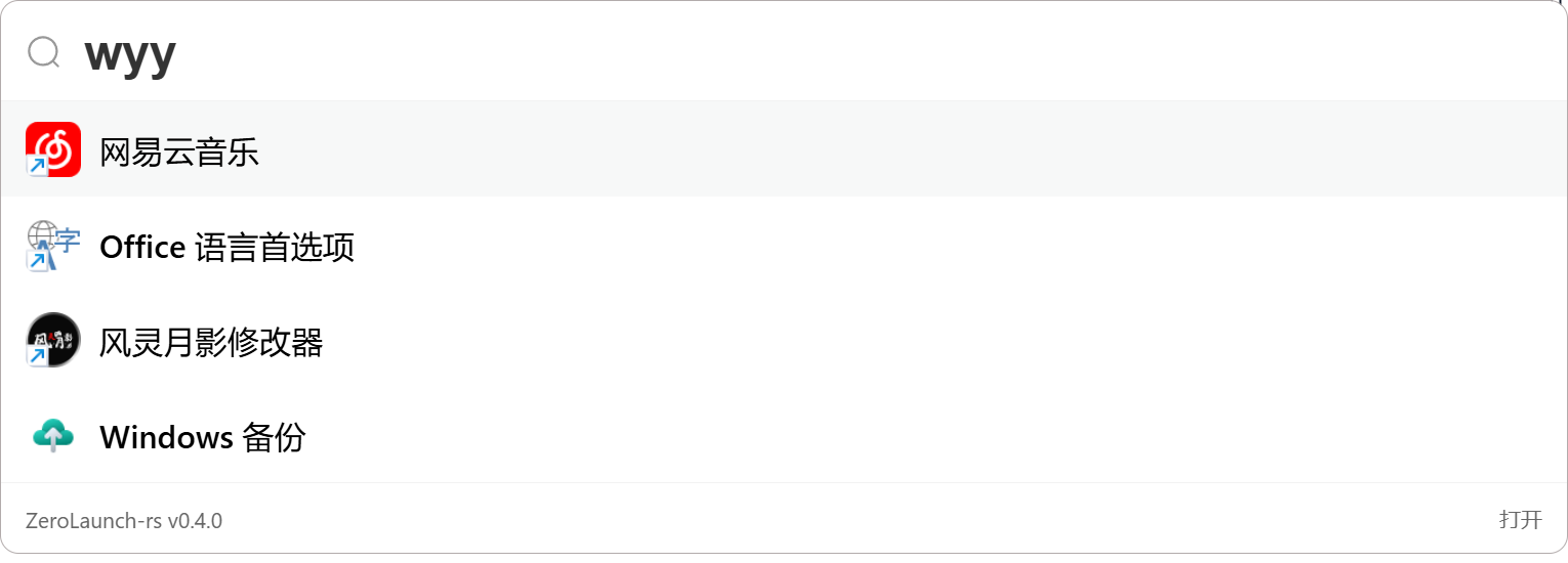 首先来介绍一下应用程序的搜索功能,ZeroLaunch-rs支持全称,模糊,拼音其及混合查询。