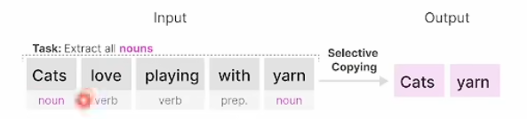 左侧为 LTI 系统,输出只能对规则的输入特征进行原样的复制,而右边的选择性系统则可以自己找重点了。同时,右侧也有联想的能力了。对于非线性时变数据,具备了很强的特征捕捉能力。