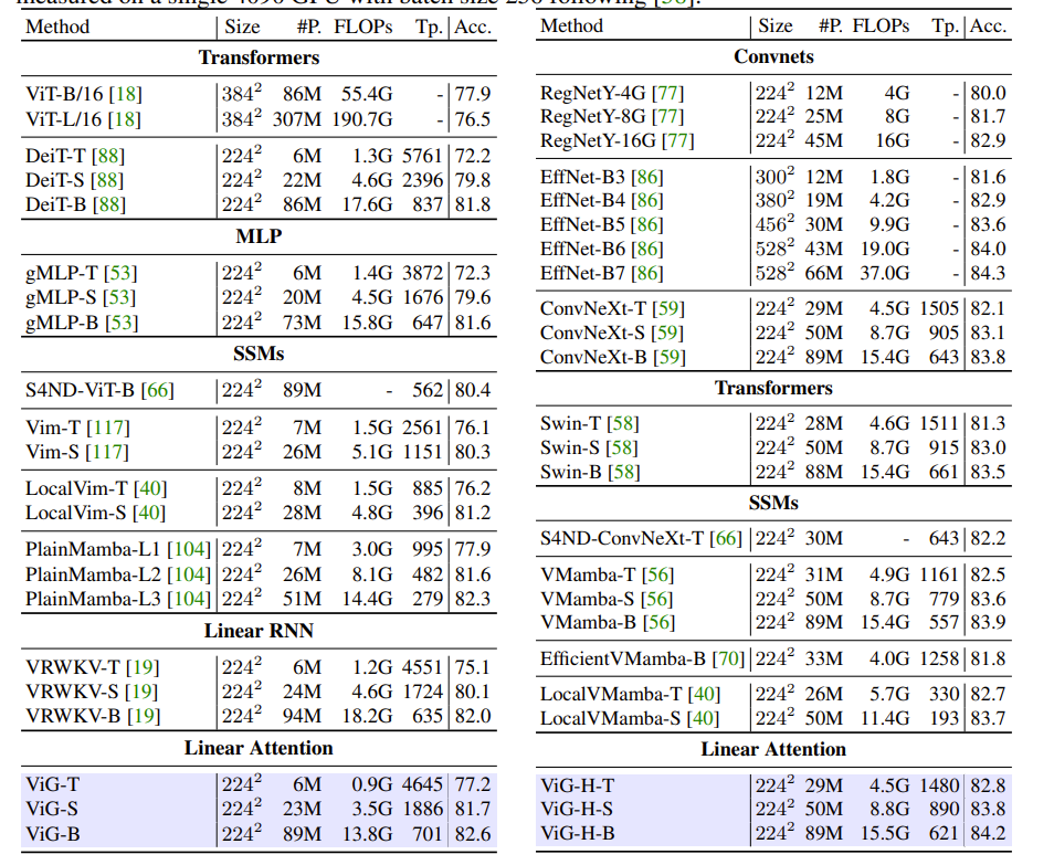 • 提出了 ViG,结合了 Gated Linear Attention(GLA) 的线性复杂度高效视觉序列学习所需的硬件感知性。解决了基于 Transformer 和基于 CNN 的方法的局限性,结合了两者的优点,提供了一种高效且可扩展的解决方案