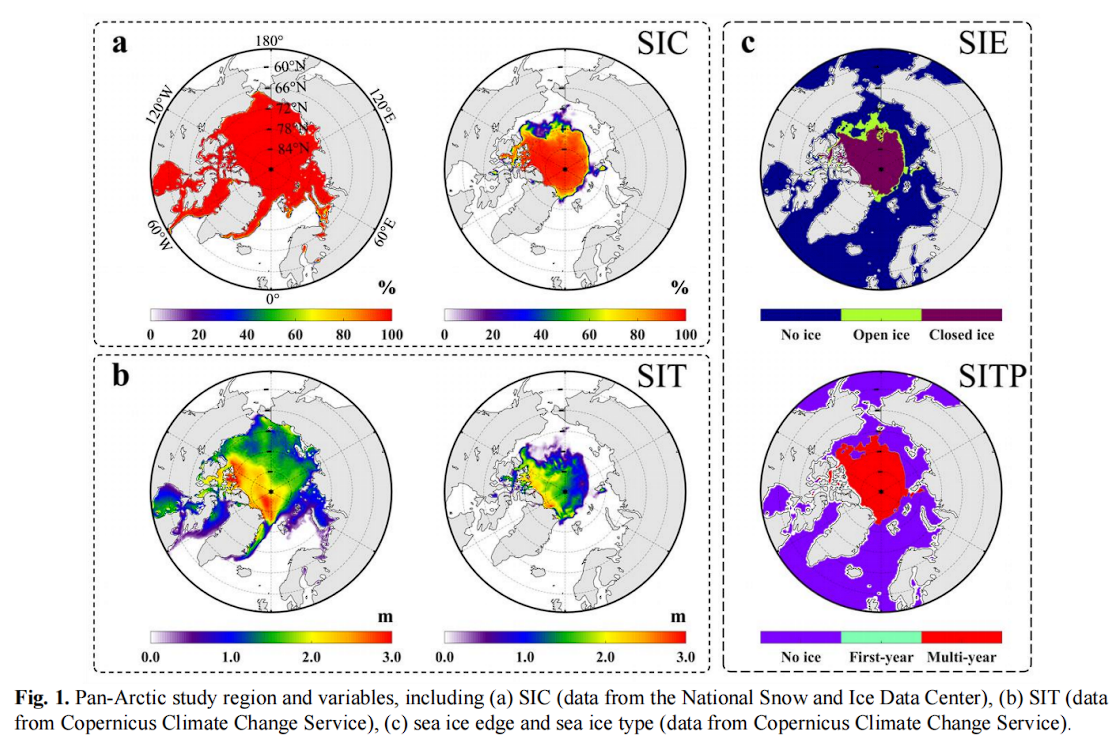 - SIC 定义为海冰覆盖面积与总海域面积的比值,是描述海冰水平分布的重要变量。